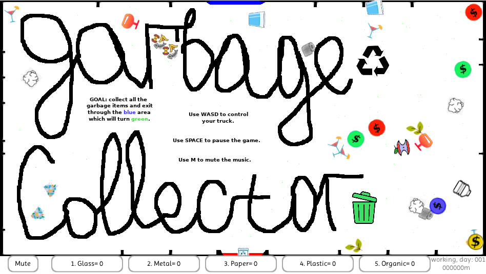 Drive a garbage collector truck through mazes. Collect the garbage items, and listen to the music.